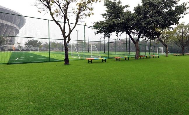 該人工草坪的腳感、球的反彈速度和指標(biāo)與天然草十分接近。草坪上的所有白線和標(biāo)志均在鋪設(shè)時用白色的樹脂纖維一次成型、無毒、無味,環(huán)保產(chǎn)品。